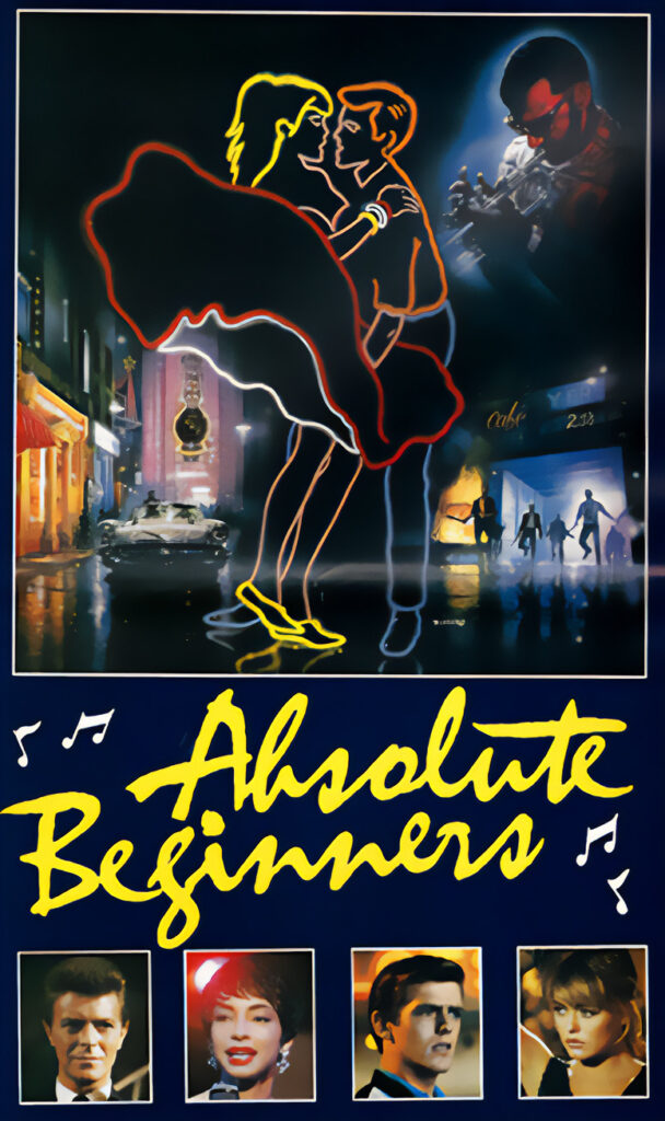 Love, music, fashion, and racial tension collide in this cult musical favorite. With performances by Sade, David Bowie, and other Brit luminaries, Absolute Beginners is a neon 1980s vision of underground London in the 1950s—a place where the dreams of young lovers and artists face the bigotry and corruption of the pop industry.