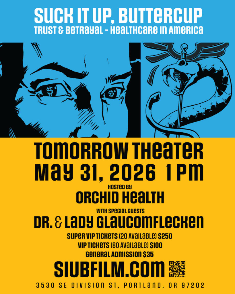 Hosted by Orchid Health, PAM CUT’s Tomorrow Theater will welcome the exclusive Portland screening of Suck it Up, Buttercup: Trust and Betrayal – Healthcare in America, a documentary built on real stories from physicians, nurses, patients, and families caught inside a system that keeps asking people to hold it together, even when it’s clearly breaking them.